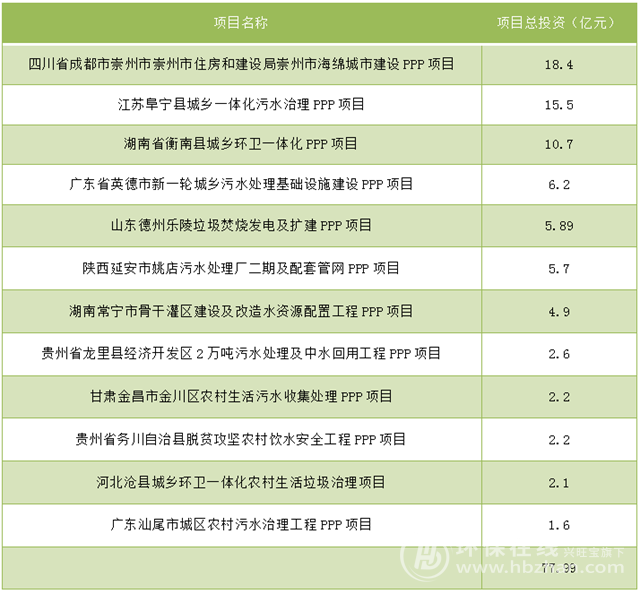 、的招标需求依然高涨,湖南省衡南县城乡环卫一体化PPP项目10.7亿的预算令人眼前一亮。海绵城市建设不愧是水处理业务中的“大户”,18.4亿元的总投资额一骑绝尘。