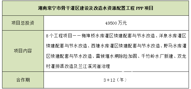 湖南常宁市骨干灌区建设及改造水资源配置工程PPP项目