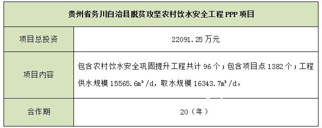 贵州省务川自治县脱贫攻坚农村饮水安全工程PPP项目
