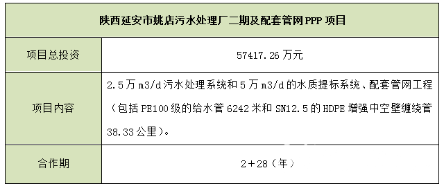 陕西延安市姚店污水处理厂二期及配套管网PPP项目