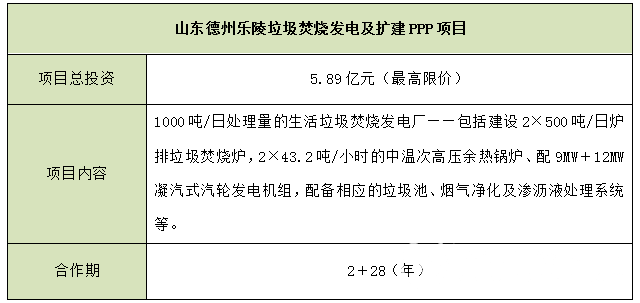 山东德州乐陵垃圾焚烧发电及扩建PPP项目