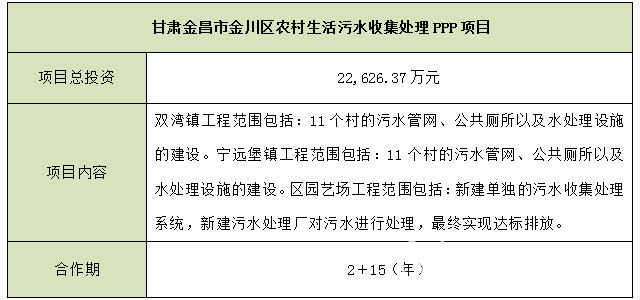 甘肃金昌市金川区农村生活污水收集处理PPP项目