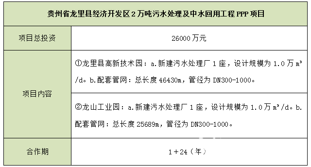 贵州省龙里县经济开发区2万吨污水处理及中水回用工程PPP项目